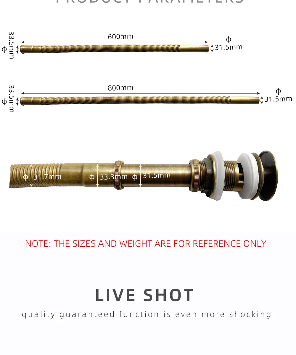60-80cm Custom Size Drainpipe Basin Bottle Trap Drain Bathroom Sink Pop Up Tube