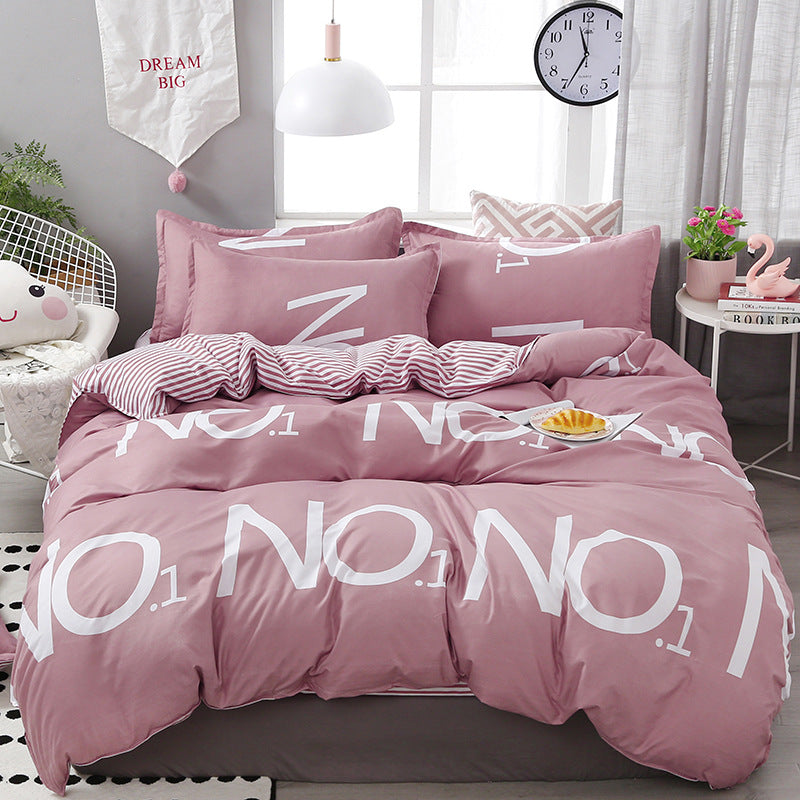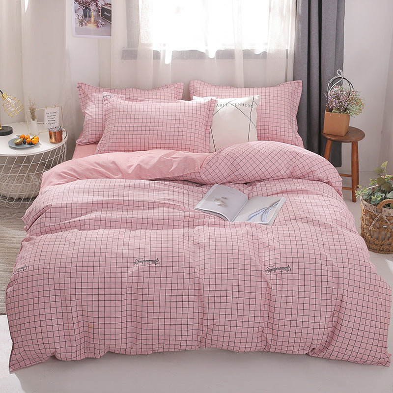 Simple bedding four-piece full cotton pure cotton student dormitory quilt cover quilt cover sheet double three-piece setFabric density: 128x68 Fabric count: 40 Printing and dyeing process: others Weaving process: twill
