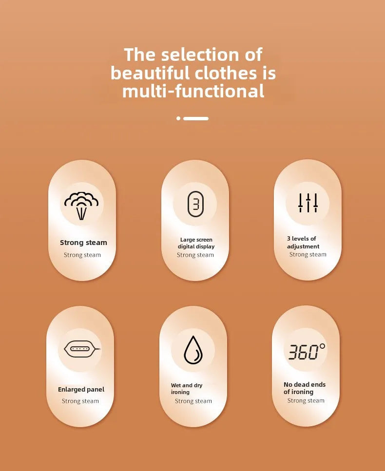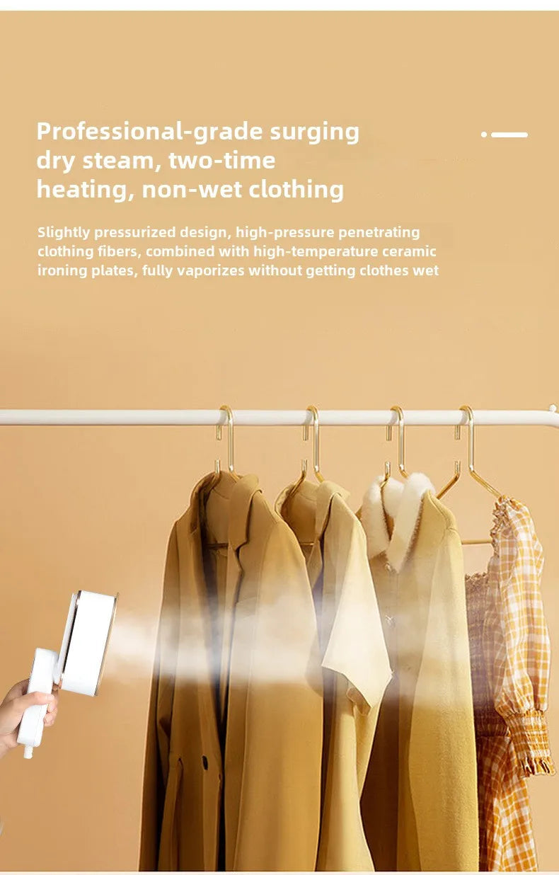 Secondary heating without wet clothes micro-boosting design, high pressure to penetrate the clothing fibers, with high temperature ceramic ironing board, fully vaporized without wet clothes