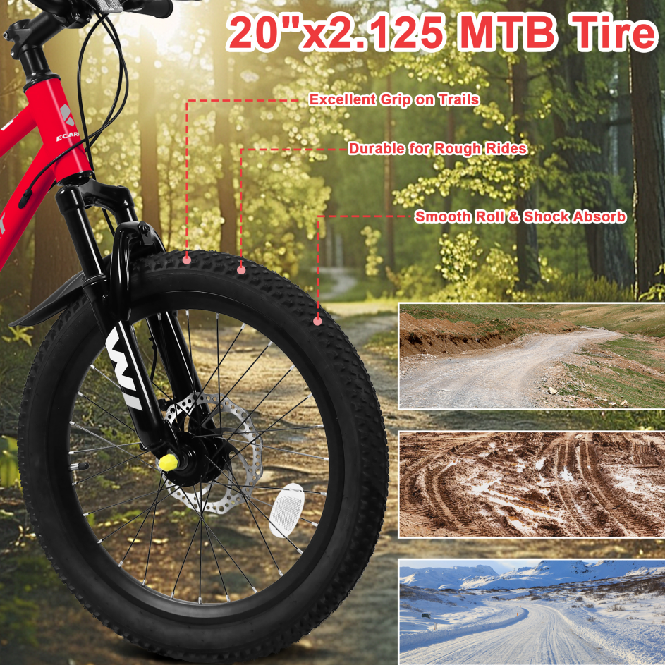 • 【20*2.125" Tires】— The Ecarpat Kids' Bicycle tires are made of high-quality rubber and have a strong puncture and abrasion resistance, 20"*2.125" tires are easier to get on and allow children to focus on having fun without fear of falling!