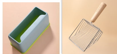 Color: pink base, gray base, light blue base, metal cat litter shovel with wooden handle
