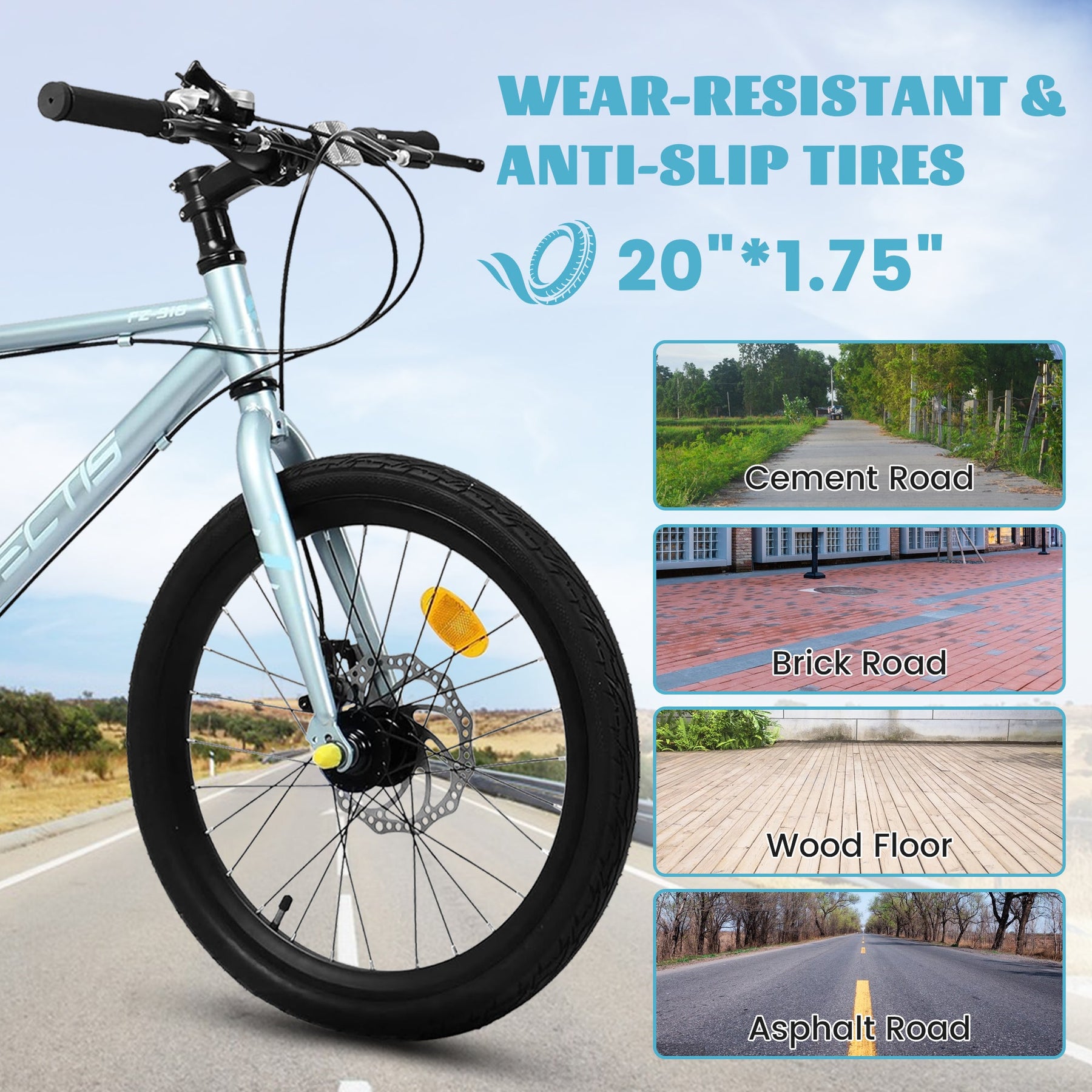 A20183 Kids Bike For 6-12 Years Old, 20 Inch Children's Bicycle For Boys Girls, 7-Speed Steel Frame, , Dual Disc Brakes, 20x1.75 Inch Tires Road Bike, 4 Color Options