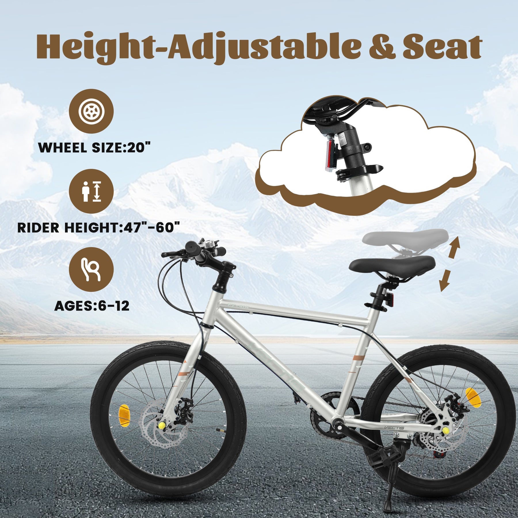 A20183 Kids Bike For 6-12 Years Old, 20 Inch Children's Bicycle For Boys Girls, 7-Speed Steel Frame, , Dual Disc Brakes, 20x1.75 Inch Tires Road Bike, 4 Color Options
