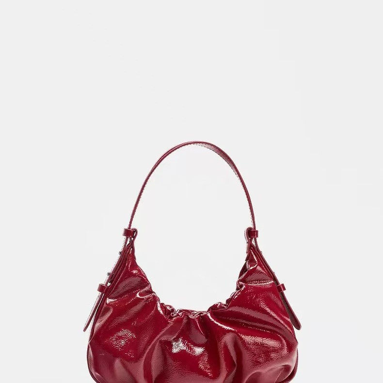 Autumn Women's Bag With Red Crackle Effect A dumpling-shaped PU shoulder bag with a red crackle finish that keeps your essentials organized and helps hide surface scuffs for everyday use.